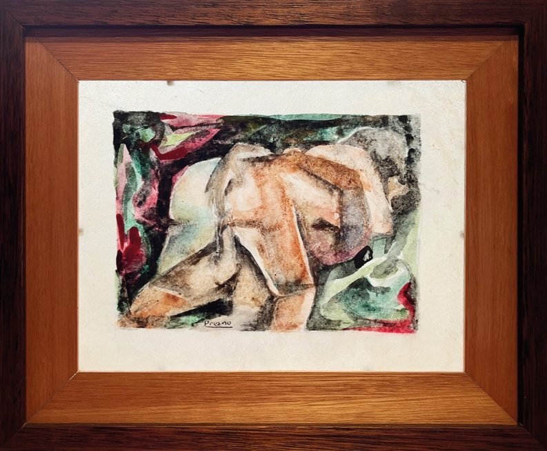 LINCOLN PRESNO (Escuela uruguaya, 1917-1991) Óleo sobre lonja “Escena erótica” Firmado abajo al centro 12 x 17,5 cm