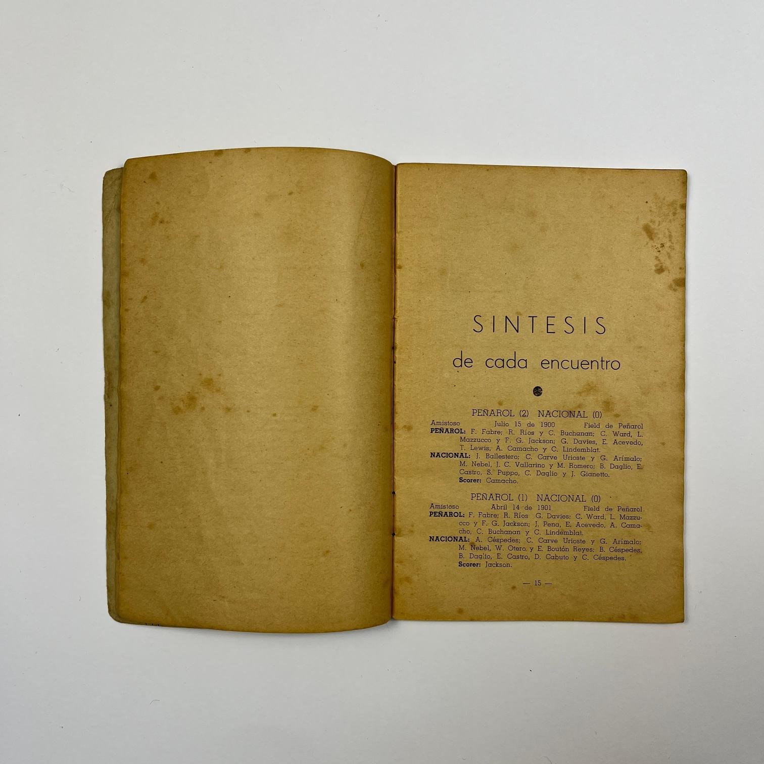 “Los 158 clásicos disputados durante 40 años entre Peñarol y Nacional. Resultados, formación de team fields, scorers, etc. hasta 1940.” 64 p. 17 x 11 cm.