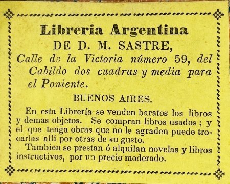 1. En esta librería nació en los inicios de ese año, el denominado Salón Literario de 1837, en cuyas filas encontramos, entre otros, los nombres del propio Sastre, Esteban Echeverría, Juan Bautista Alberdi y Juan María Gutiérrez.