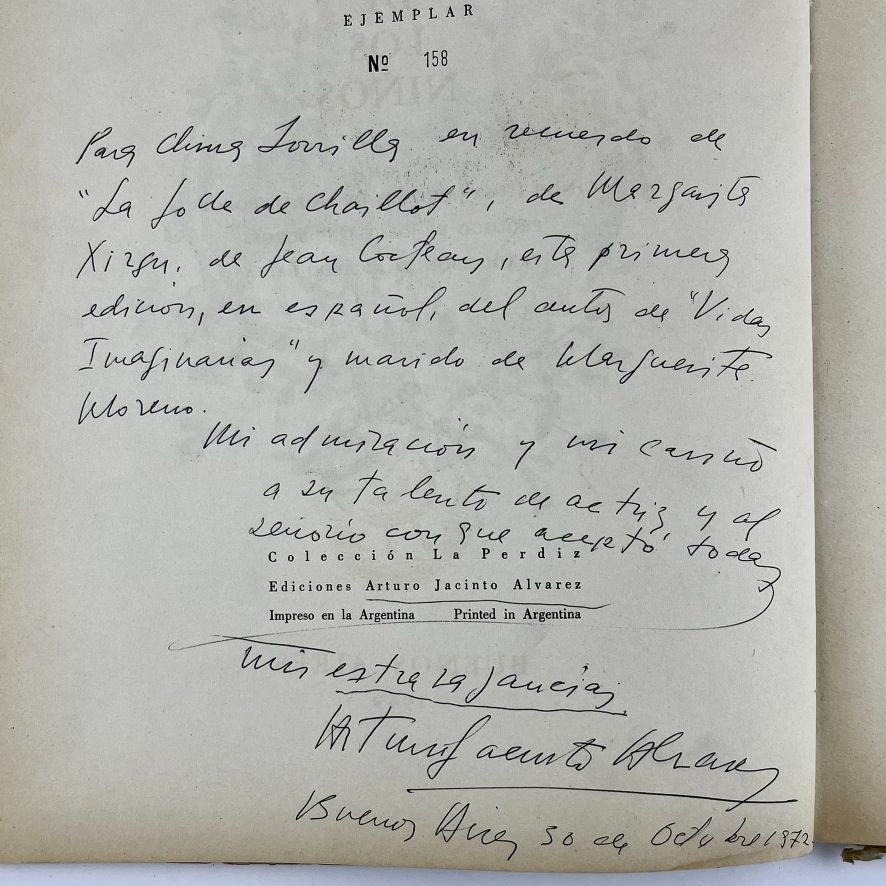 SCHWOB, Marcel (Francia, 1867-1905). «La cruzada de los niños.» Buenos Aires, 1949. La Perdiz. 64 p. Ejemplar dedicado. «Para China Zorrilla, un recuerdo de «La loca de Chaillot», de Margarita Xirgu, de Jean Cocteau (…).