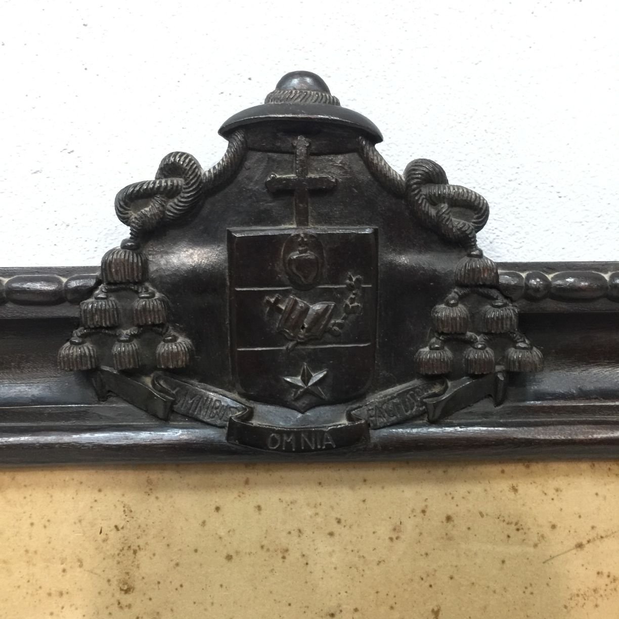 Marco en madera tallada con escudo de armas arzobispal. 48 x 66 cm.