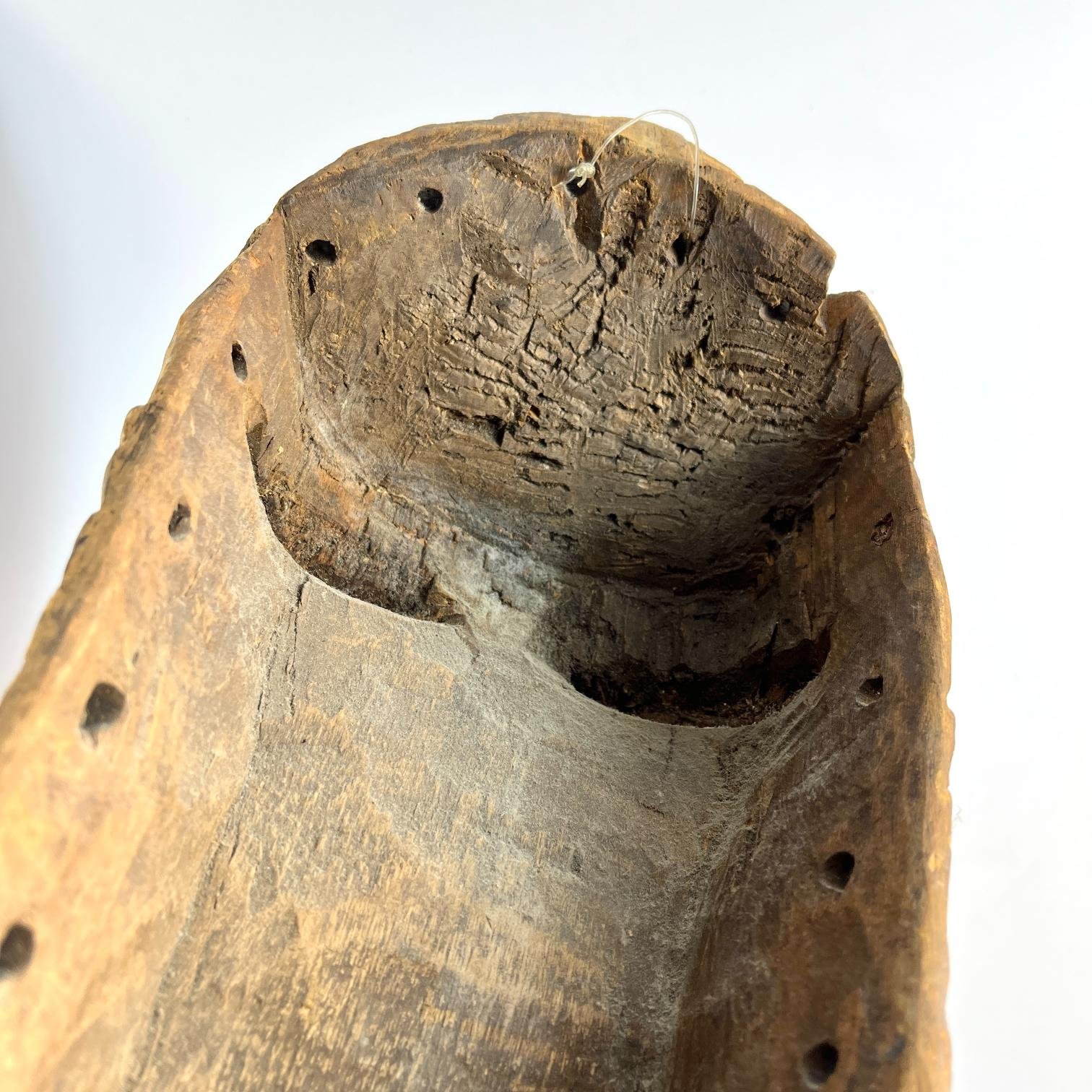 Máscara tribal africana en madera ebanizada tallada y policromada «cara». 34 x 14 x 10 cm.