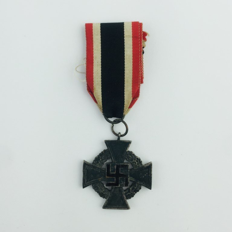 Medalla alemana época WWII, en bronce y esmalte, con inscripción «Fur Treue Dienste». Con cinta original.