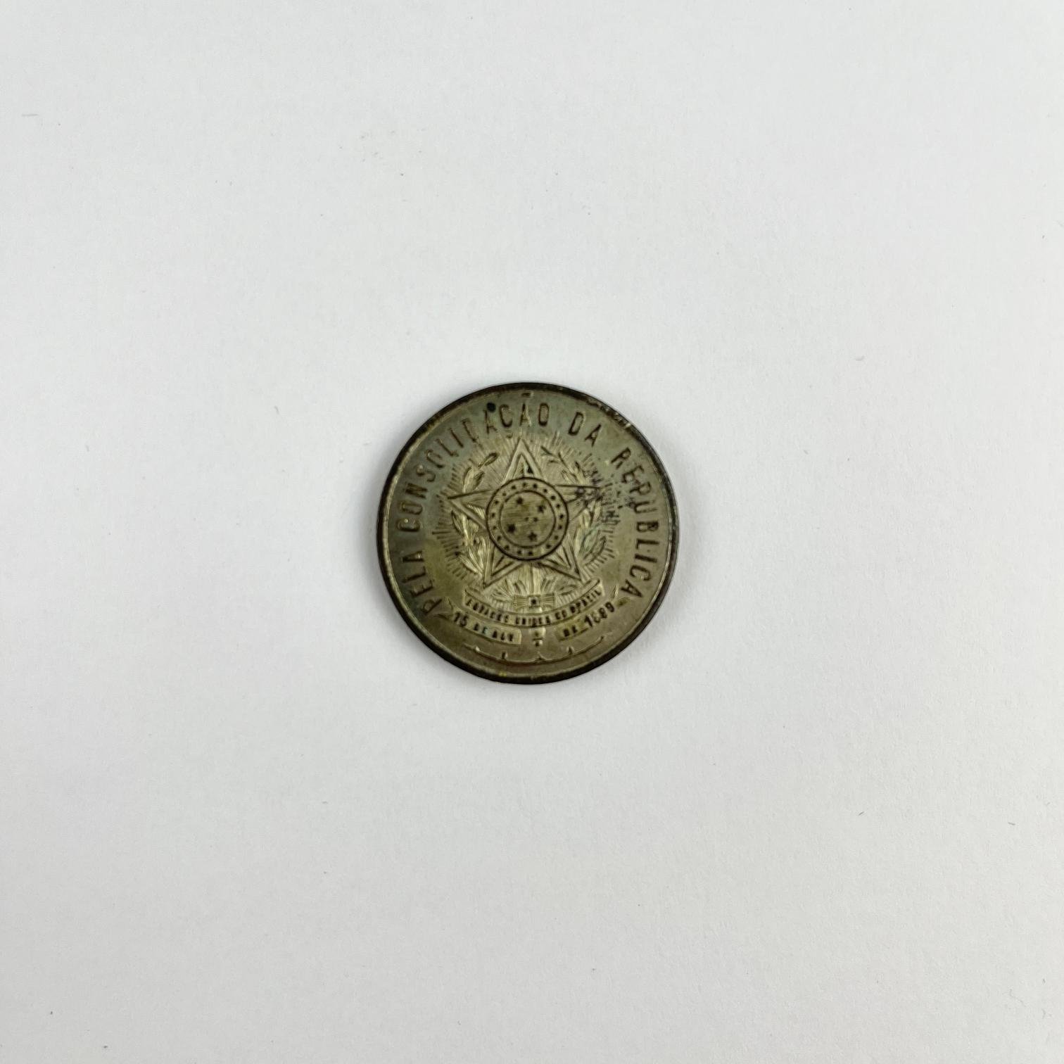 Medalla brasileña riograndense en metal plateado para la consolidación de la república en 1899.