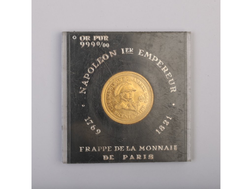 Medalla en oro conmemorativa de Napoleón Bonaparte. Diámetro 27 mm. En estuche original.