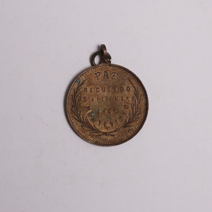 Medalla en bronce. «Paz. Recuerdo 25 setiembre. 1897. Montevideo.» Realizada por A. Bidoglia.