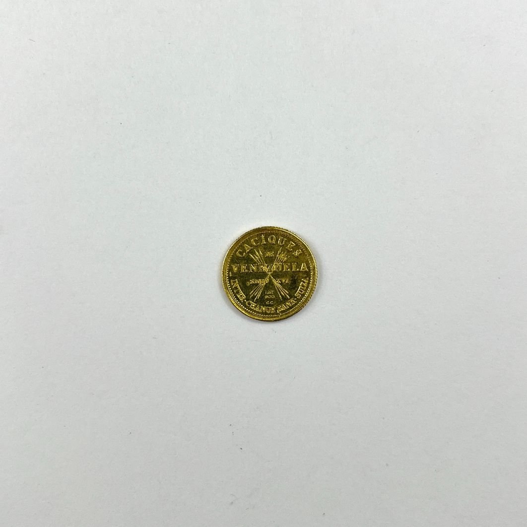Medalla venezolana en oro. «Tamanaco, cacique de Venezuela.» Diámetro 14 mm. Peso 1.4 gr.