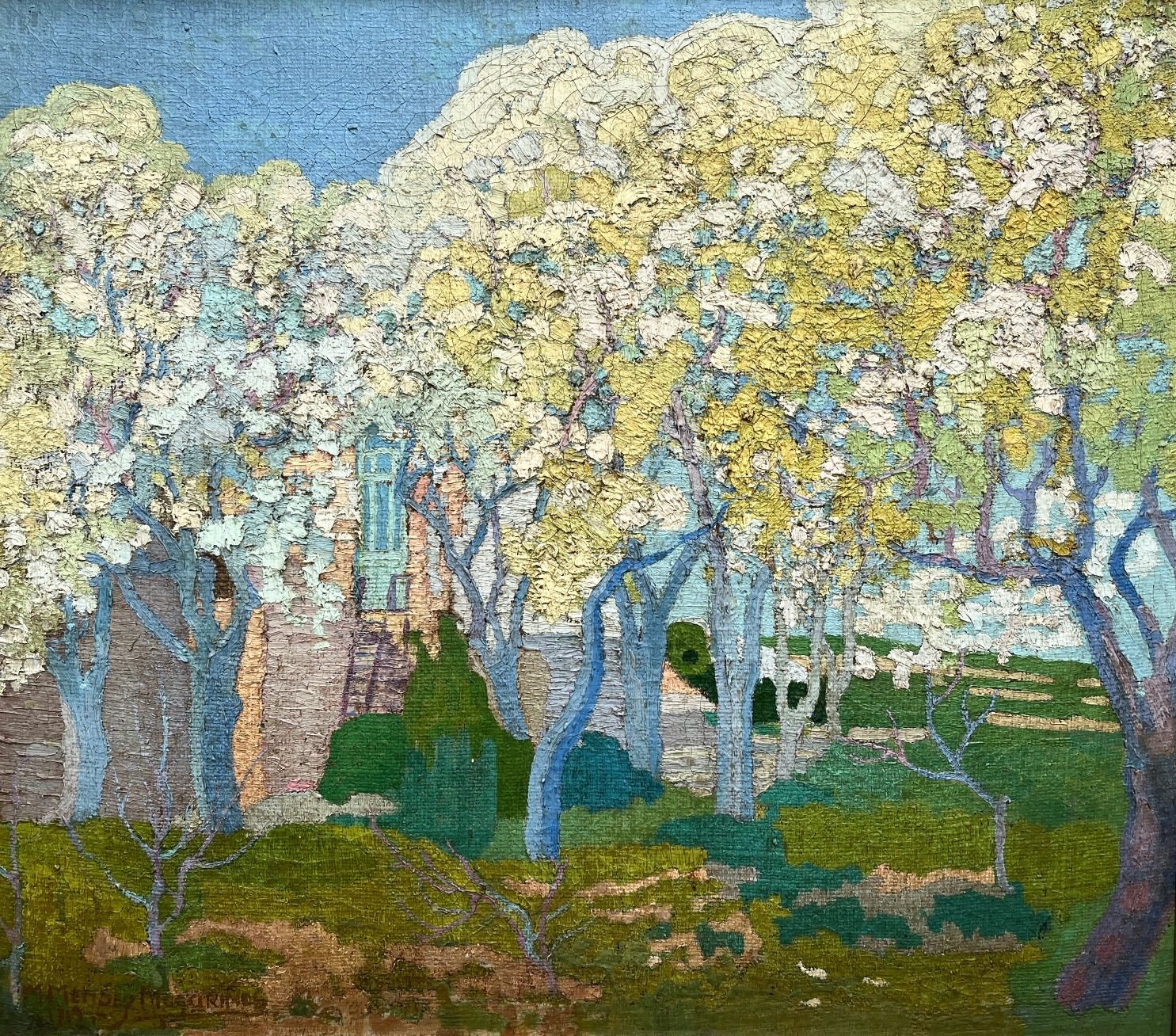 MELCHOR MÉNDEZ MAGARIÑOS (1885-1945) «Ciruelos en flor» Óleo sobre tela Firmado abajo a la izquierda 66 x 76 cm