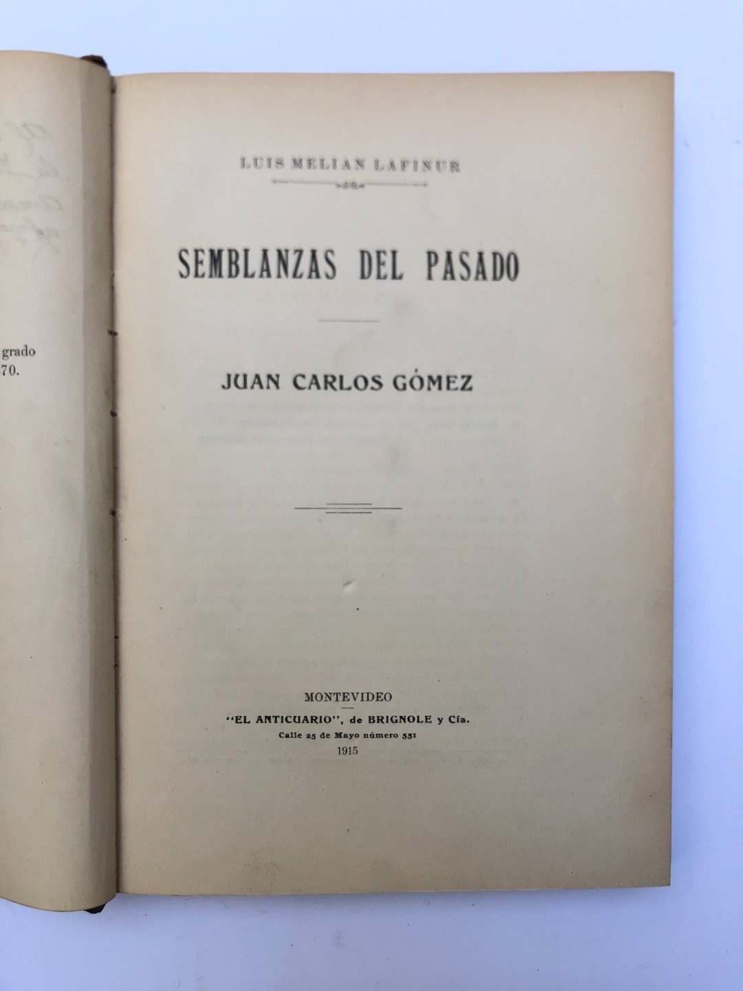 MELIÁN LAFINUR, Luis: Semblanzas del pasado Juan Carlos Gómez. Montevideo, imprenta el Siglo Ilustrado. 1915. Encuadernación con lomo de cuero.