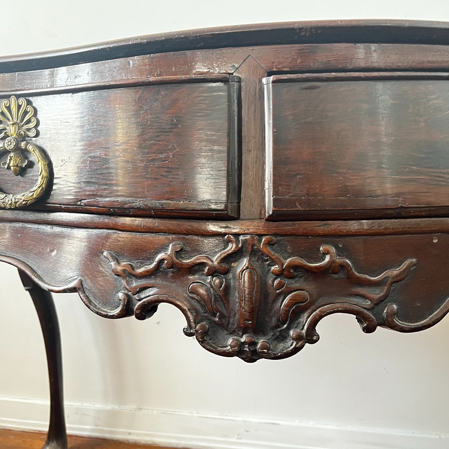 Mesa de arrimo lusobrasileña estilo Dom José en caoba tarugada con tiradores en bronce. Virreinato del Río de la Plata, c. 1800. 140 x 98 x 39 cm.