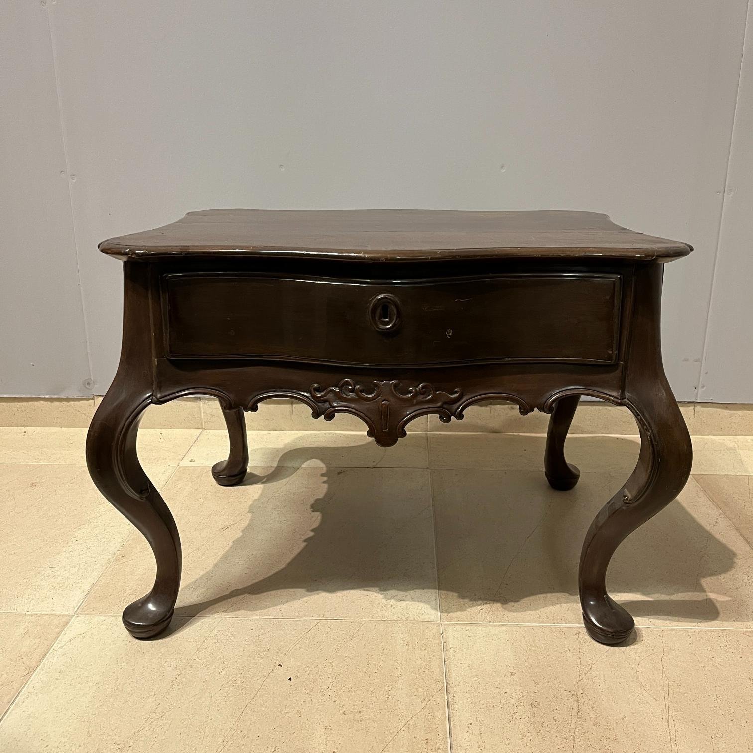 Mesa de estrado o “matera” lusobrasileña s. XVIII estilo João V en madera tarugada. Un cajón y laterales tallados. 47 x 67 x 48 cm. Colección Alfredo Folle Algorta.