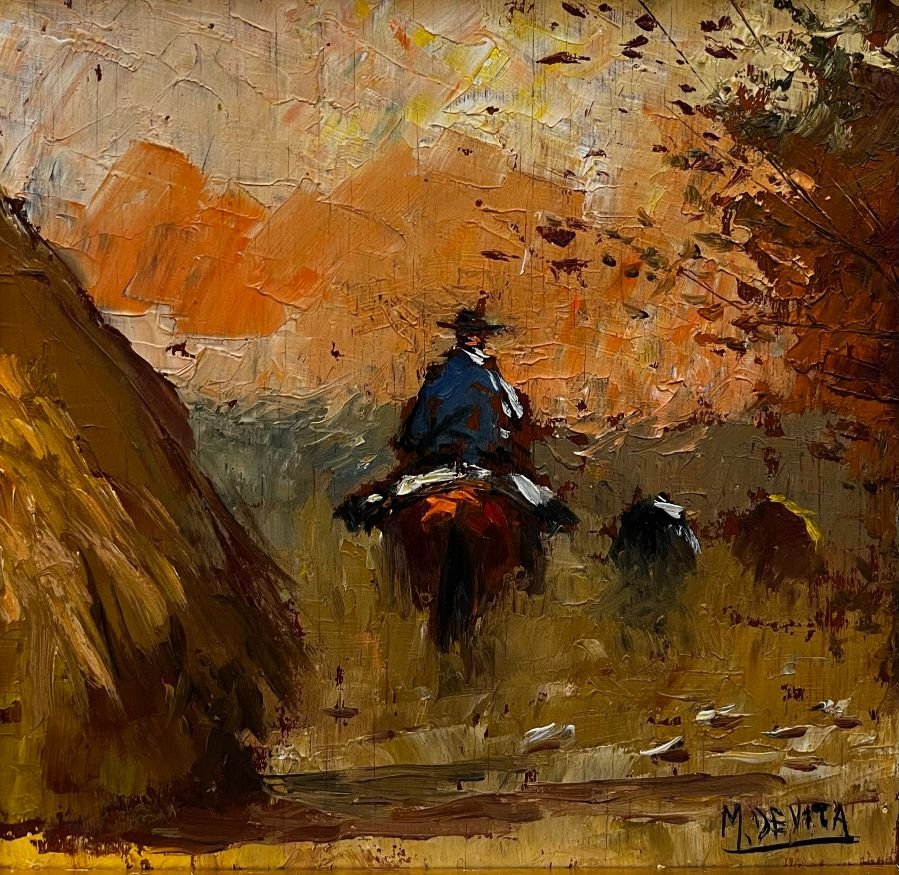 MIGUEL DE VITA (1923-2004) «Arriero» Óleo sobre cartón Firmado abajo a la derecha 19 x 19 cm