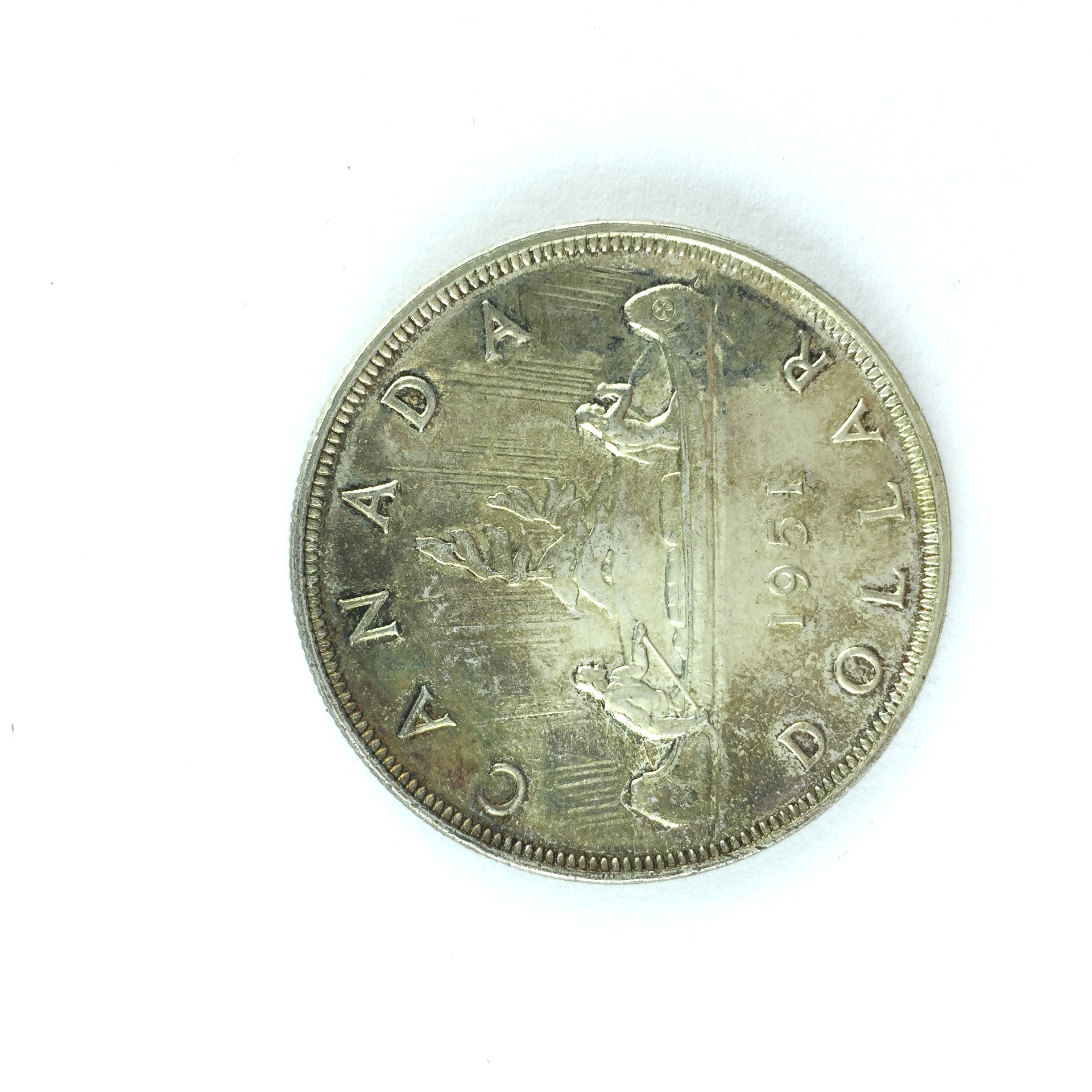 Moneda canadiense en plata año 1953 denominación 1 dólar.