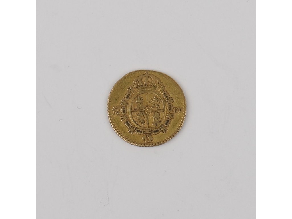 Moneda española en oro denominación 1/2 escudo del año 1786, período Carlos III. 1.73 gr.
