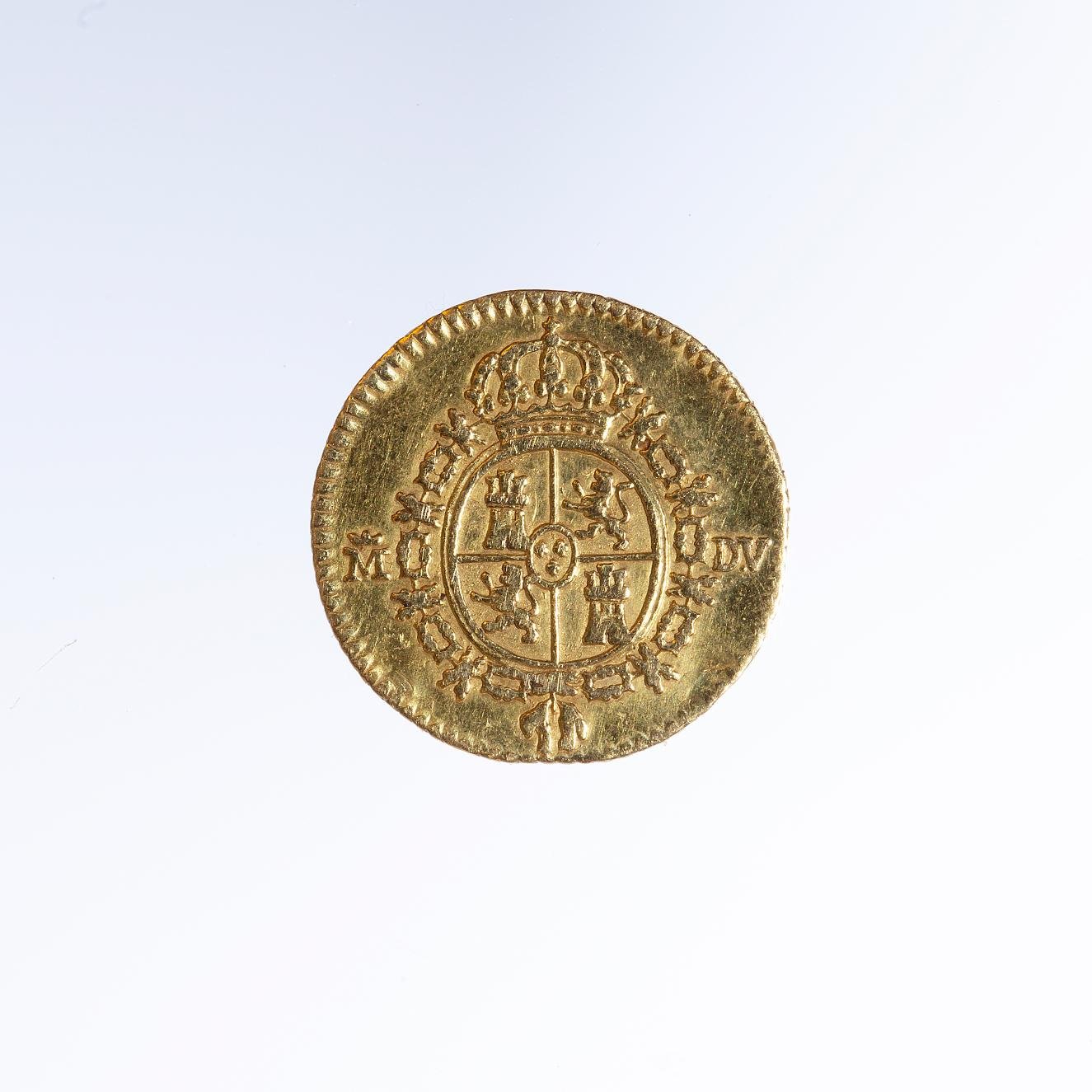 Moneda española en oro 875 denominación medio escudo del año 1786, época Carlos III. Peso 1,75 gr.