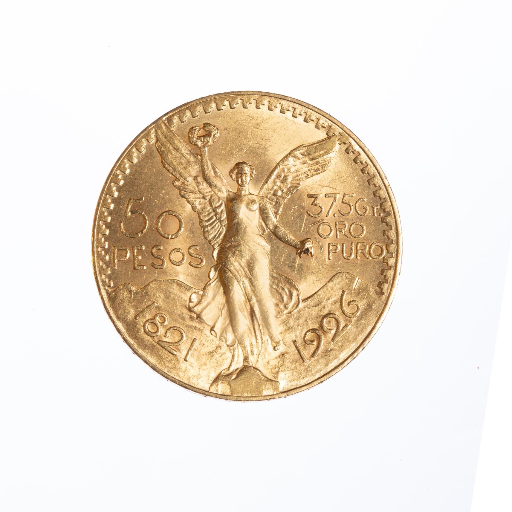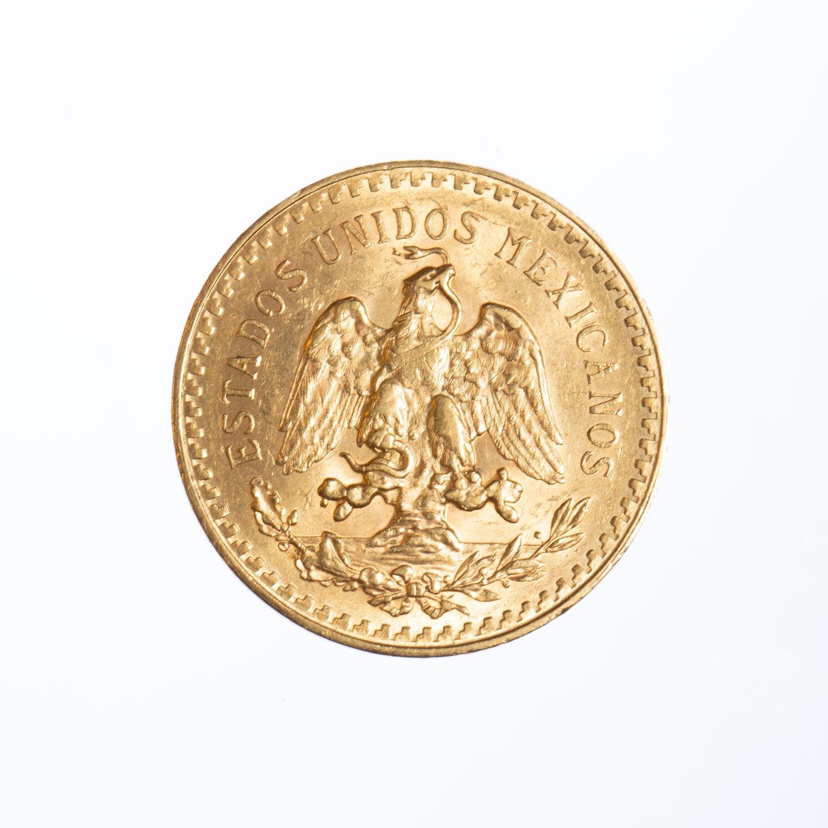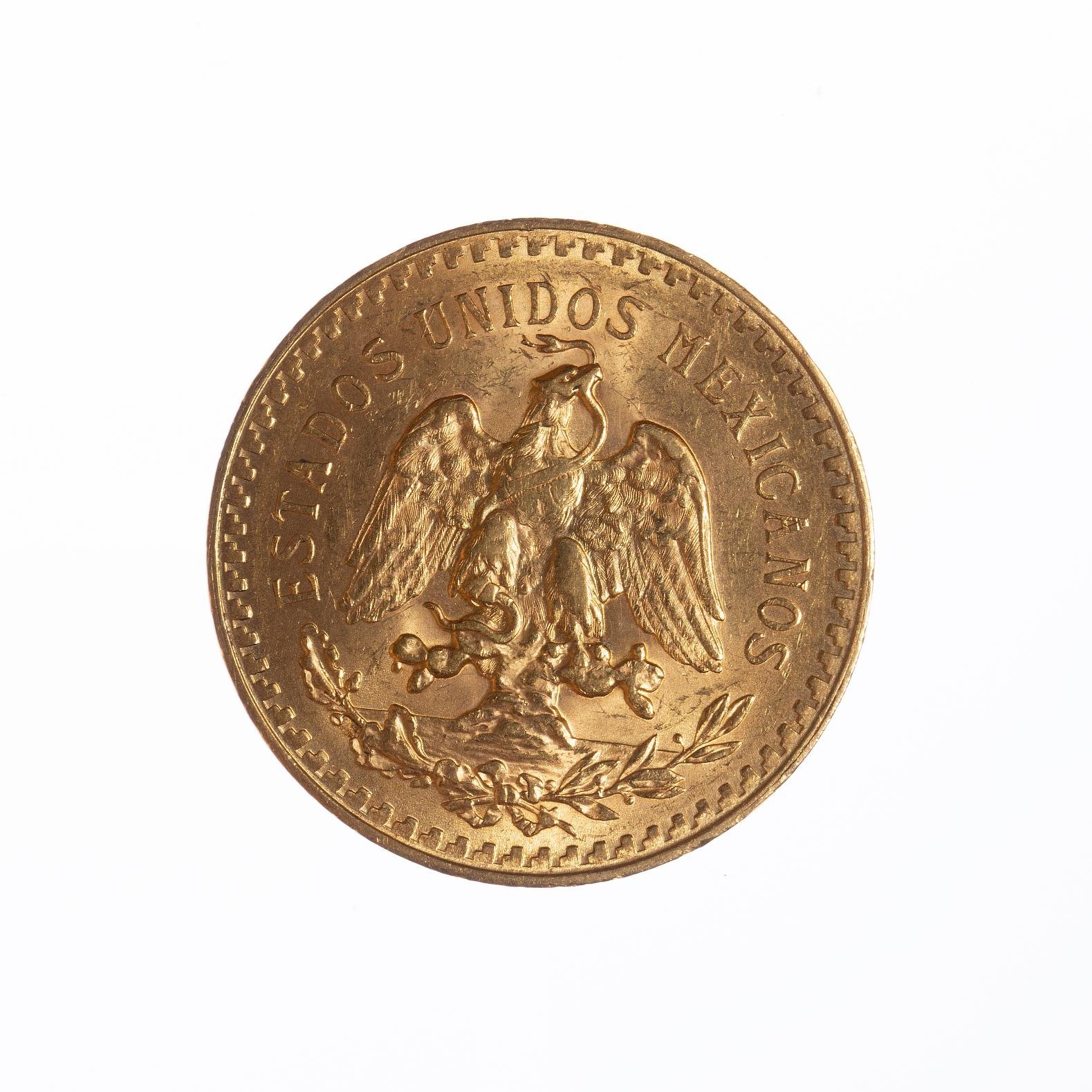 Moneda mexicana en oro denominación 50 pesos del año 1945.