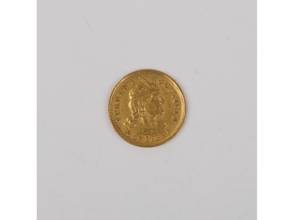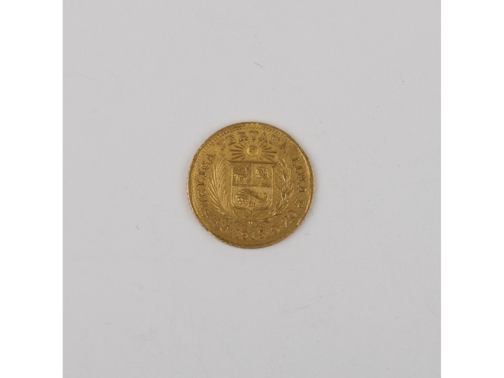 Moneda peruana en oro denominación 1/5 de libra del año 1919. Peso 1.59 gr.