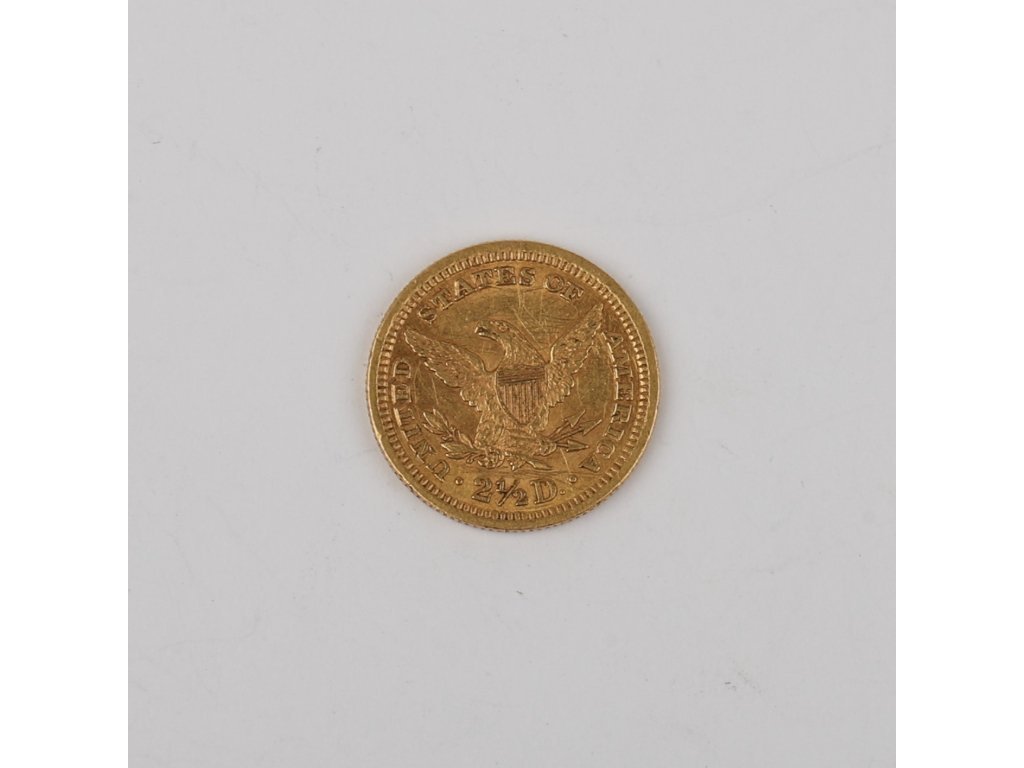 Moneda estadounidense en oro denominación 2.5 dólares del año 1895. Peso 4.18 gr.