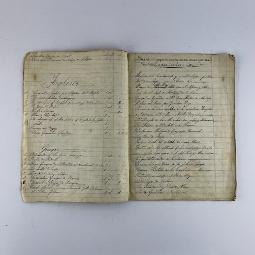 En cuanto al contenido del catálogo, como bien lo indica en la portada, las obras se dividen entre las que ya forman parte de la biblioteca y las que su propietario desea adquirir, ubicadas en ese orden. En la primera lista aparecen las ediciones españolas, incluyendo temas de historia, poesía, retórica, gramática, ortografía, lógica y geografía, entre otros, y continúa con las obras escritas en o sobre el latín (“Latinos”), con otro repertorio de títulos. Luego detalla los libros pretendidos en francés, buena parte de ellos, escritos por los clásicos, como Chateaubriand, de Lamartine y la Fontaine, y los títulos en inglés, especialmente sobre la gramática en este idioma, para concluir con la descripción de las existencias con las obras que abordaban la lengua y la cultura griega.