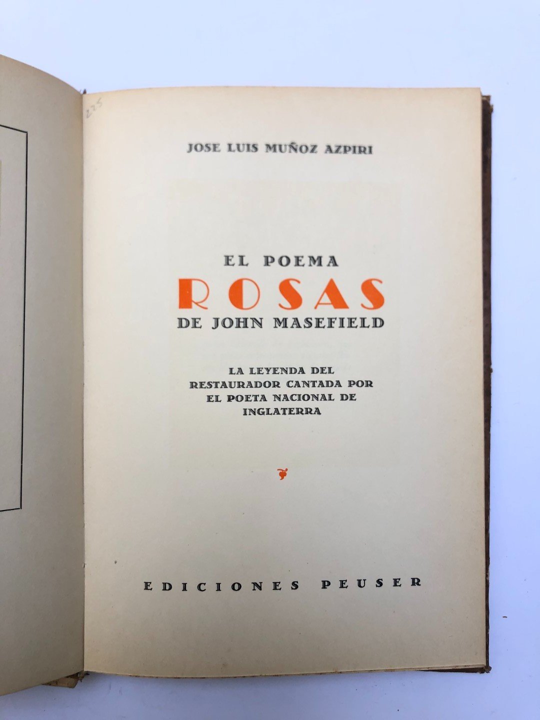 MUÑOZ AZPIRI, José Luis: El poema Rosas de John Masefield. Buenos Aires, impreso en Peuser. 1955. Encuadernación en tapas duras original.