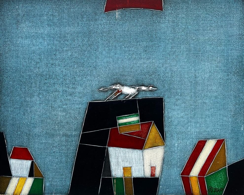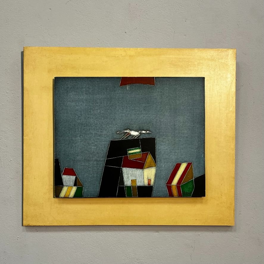 NELSON RAMOS (1932-2006) «Caserío con perro» Acrílico sobre fibra Firmado y fechado «78» abajo a la derecha 50 x 40 cm