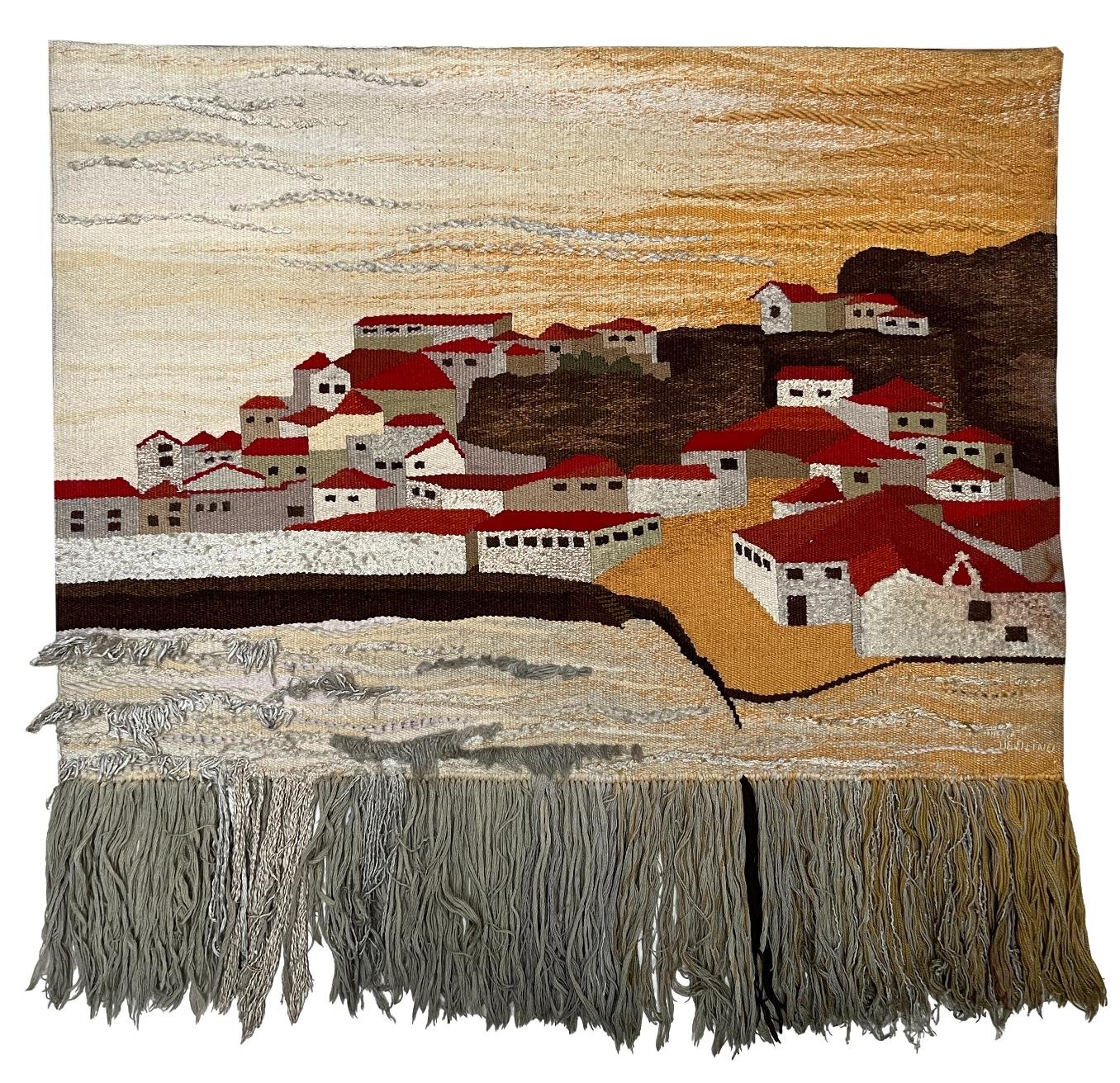 NILSA UGOLINO (Escuela uruguaya, s. XX) Tapiz en lana «Punta del Diablo» 1985 130 x 95 cm