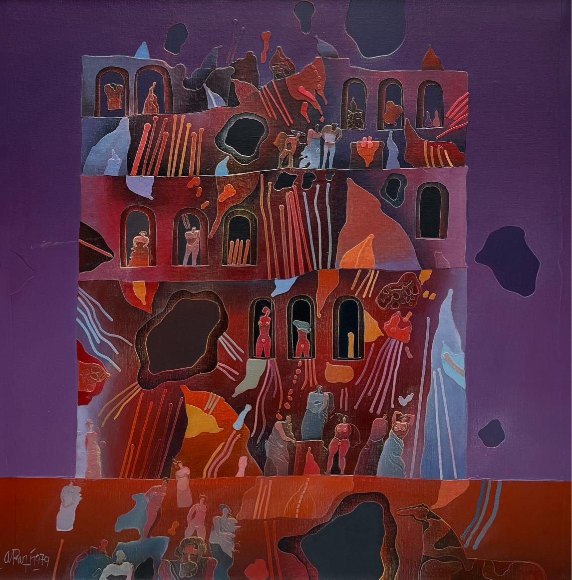 OSVALDO PAZ (Escuela uruguaya, 1945-2003) Técnica mixta sobre tela «Construcción» Firmado y fechado «1979» abajo a la izquierda 89 x 89 cm