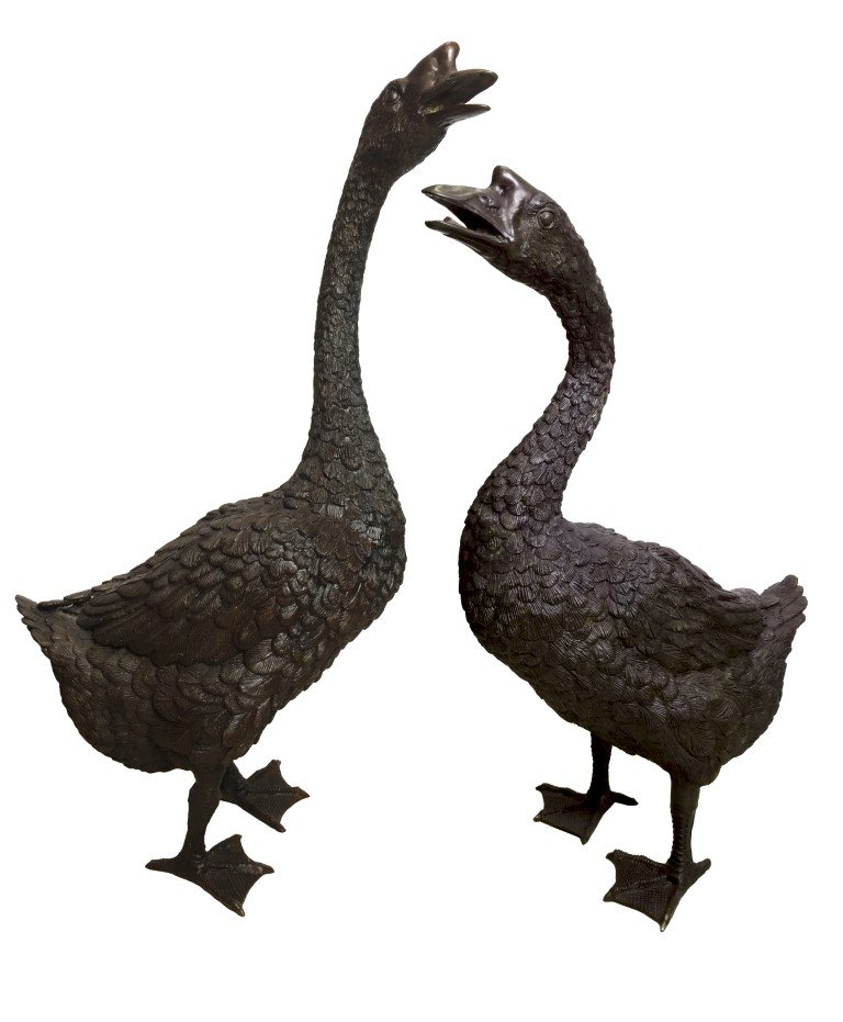 Par de esculturas en bronce pátina marrón. «Gansos.» 70 x 87 cm.