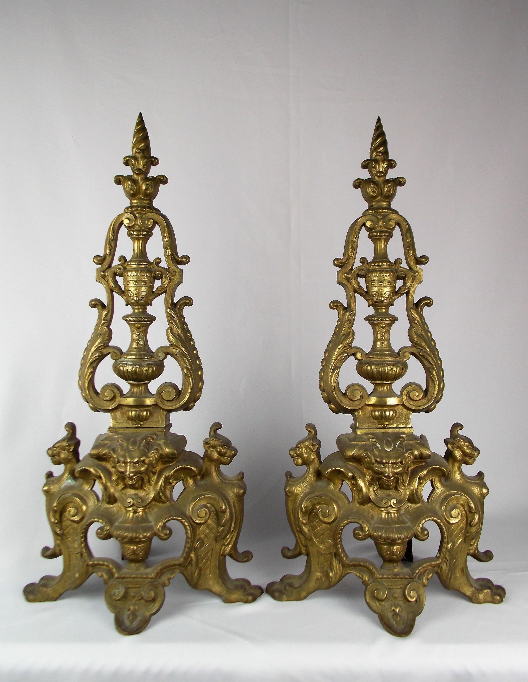 Par de morillos en bronce calado, cincelado y esculturado «máscaras y gárgolas». 66 x 32 cm.