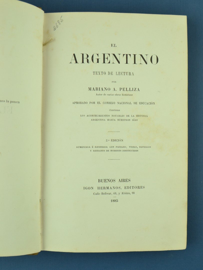 PELLIZA, Mariano Aurielio: El Argentino (…). Buenos Aires, Igon hermanos editores. 1885. Encuadernación con lomo de cuero. Segunda edición.