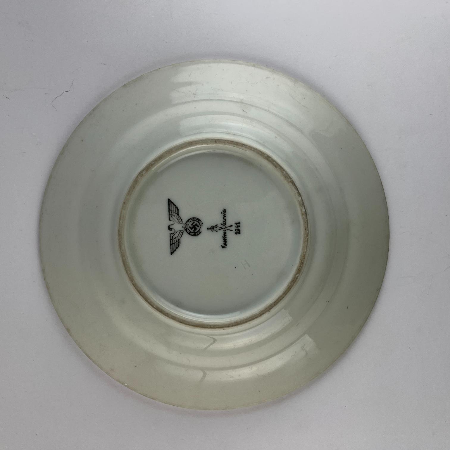 Plato hondo alemán en porcelana con sello de la Wehrmacht, fechado en 1941. Diámetro 23,5 cm.