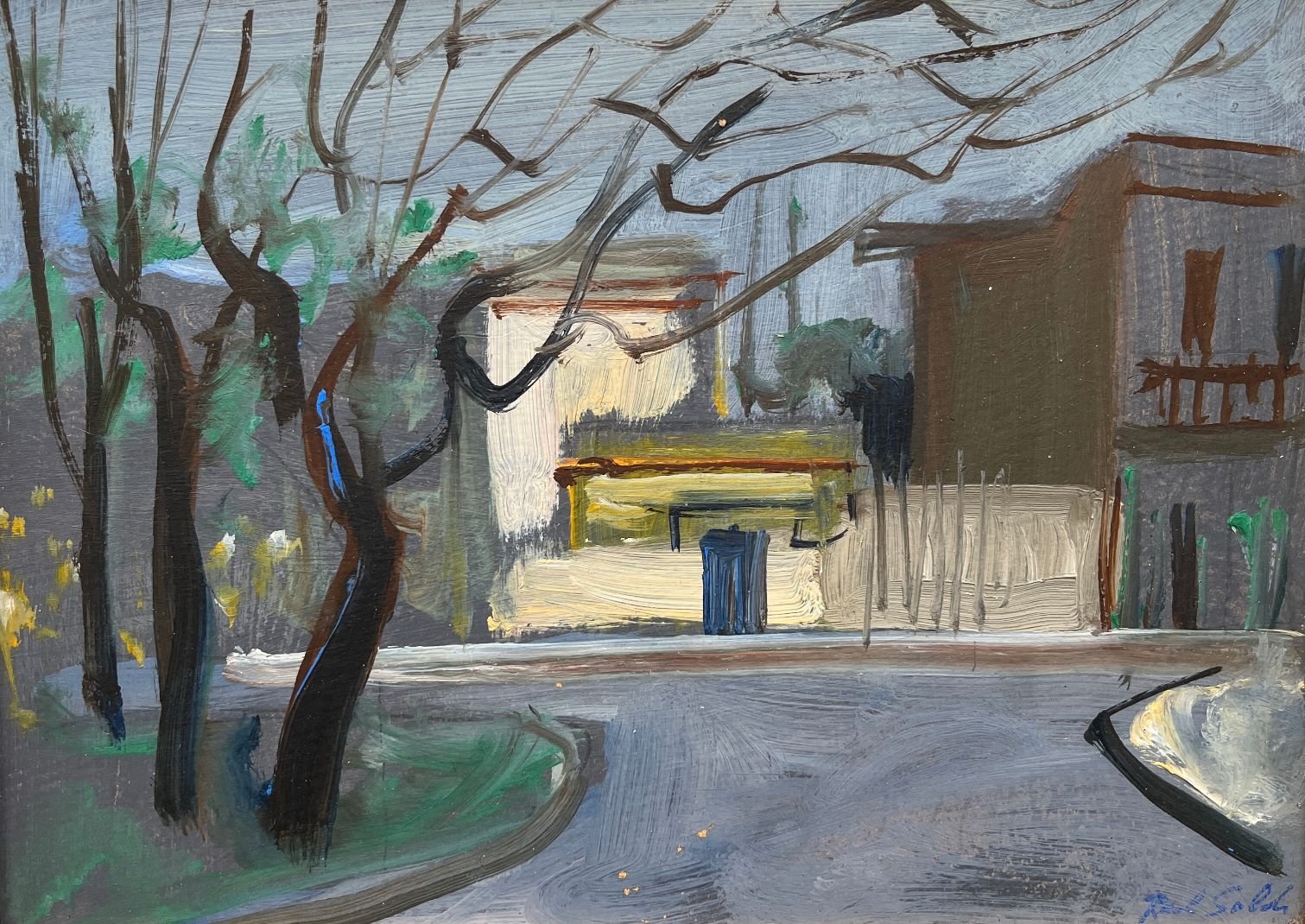 RAÚL SOLDI (Escuela argentina, 1905-1994) Escena de pueblo Óleo sobre cartón Firmado abajo a la derecha 17 x 23 cm