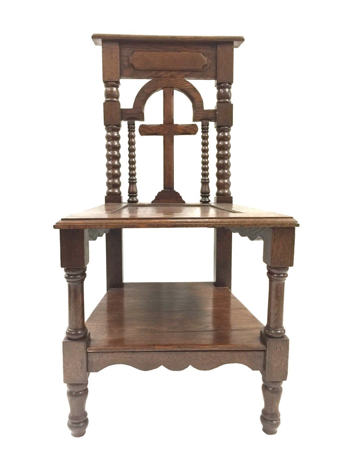 Silla reclinatoria en madera de roble tallada y esculturada «cruz» y «columnas salomónicas».