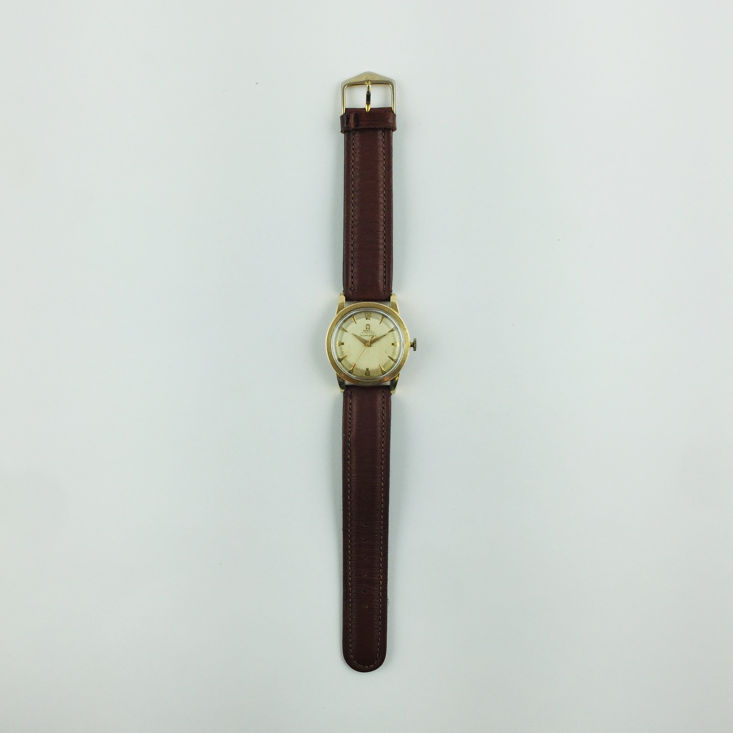 Reloj pulsera para hombre marca Omega modelo Seamaster automático. Esfera color champagne. Caja enchapada en oro, con tapa en acero. Diámetro 34 mm. Funcionando.
