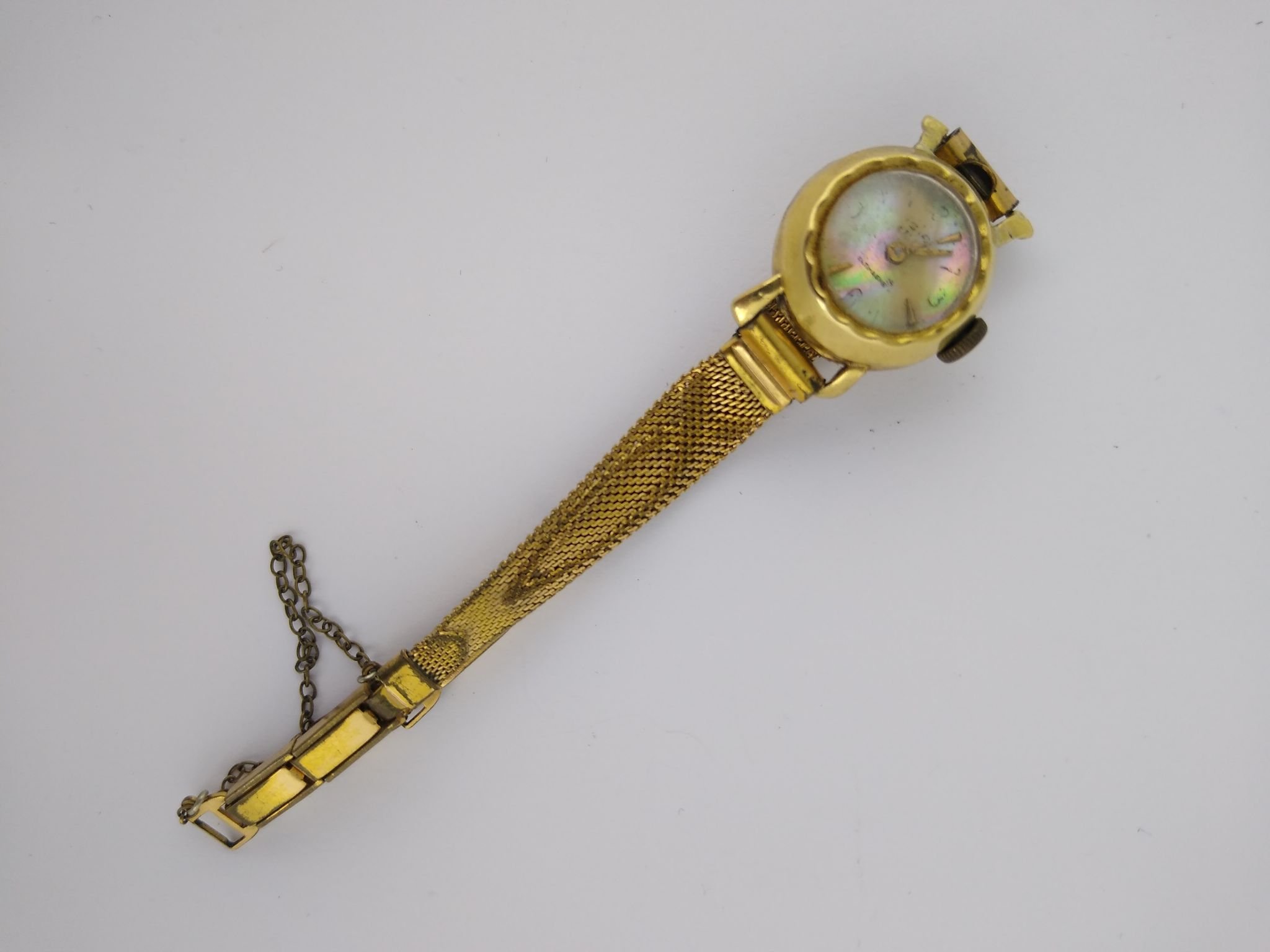 Reloj pulsera para dama. Caja en oro 18 K amarillo de un diámetro de 18 mm. Malla en metal dorado. funciona.