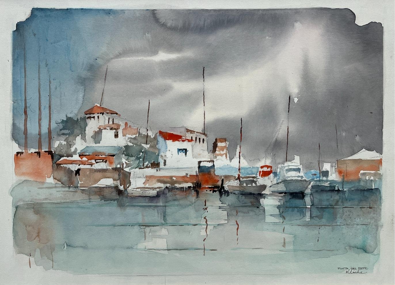 RODOLFO KLICHE (Escuela uruguaya, 1921-2007) Acuarela sobre cartulina «Punta del Este» Firmado y titulado abajo a la derecha 45 x 60 cm