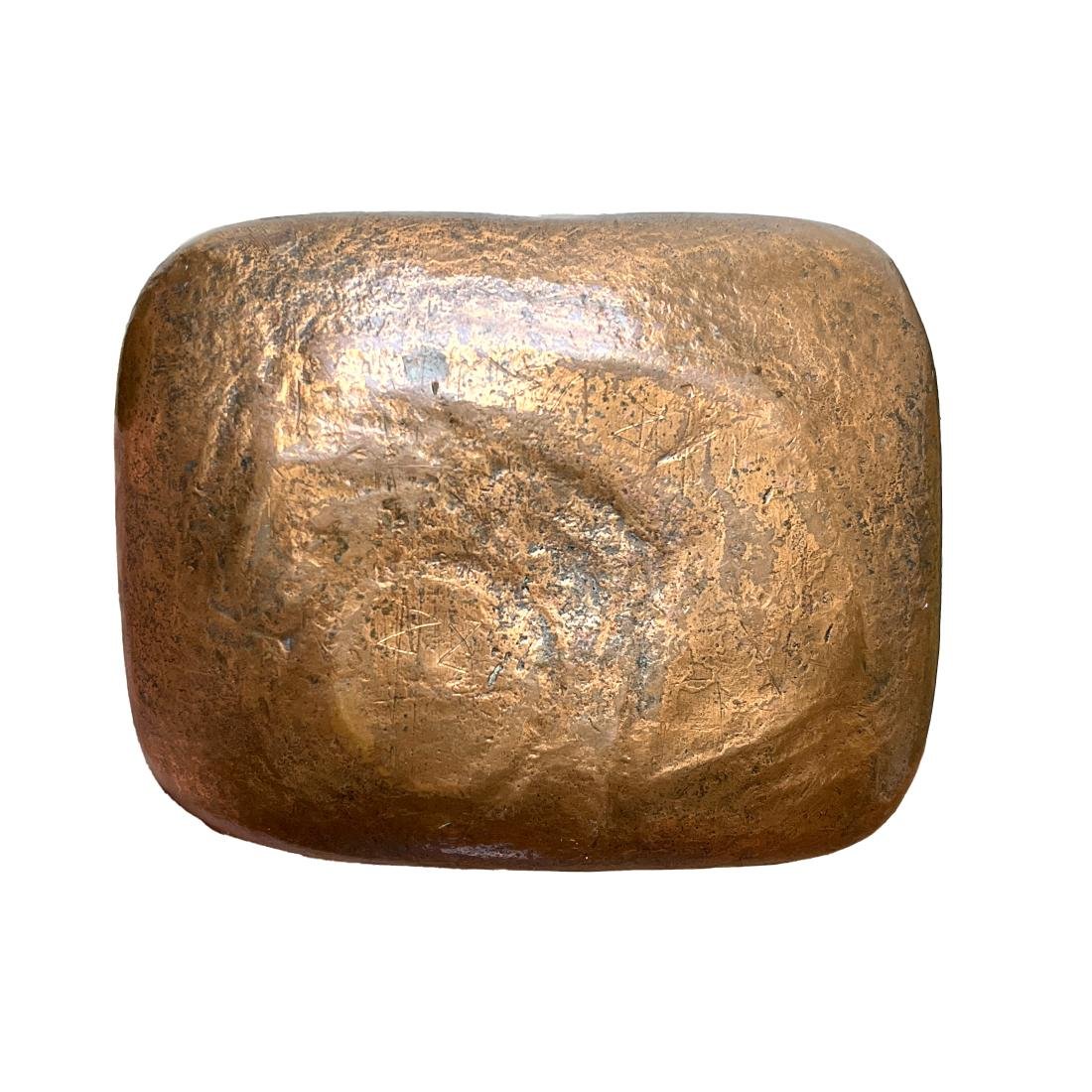 RODOLFO VISCA (Escuela uruguaya, 1934-2009) Placa en cobre martelado y dorado, con detalles en esmalte «Formas geométricas» Firmado y fechado «88» en la base 11,5 x 9 cm
