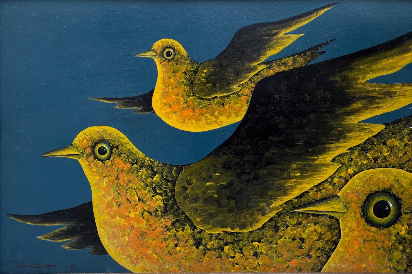 RUISDAEL SUÁREZ (Escuela uruguaya, 1929-2004) Acrílico sobre fibra «Miradas» Firmado y fechado «81» abajo a la izquierda 45 x 67 cm