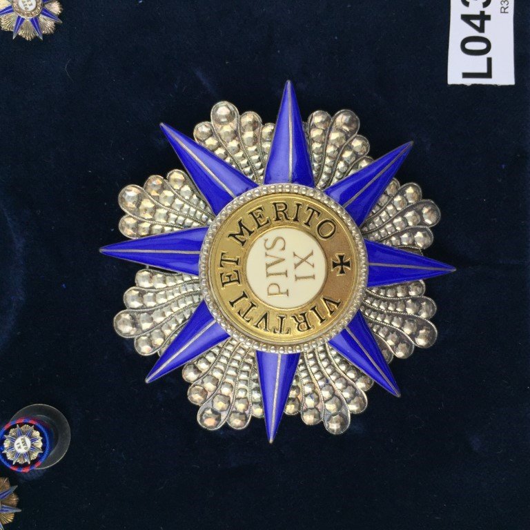 Set de condecoración vaticana «Pio IX». Con estuche y certificado original.