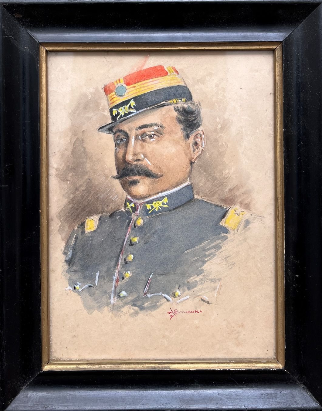 Acuarela sobre papel. «Soldado de caballería del ejército uruguayo.» Firmado «Sansón» abajo a la derecha. 23 x 17 cm.