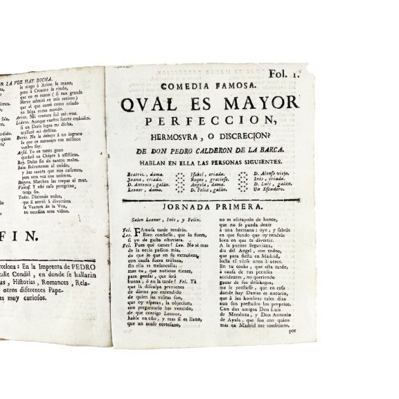 El volumen reúne trece comedias de diversos autores del Siglo de Oro Español, entre ellas dos obras de Pedro Calderón de la Barca, cuya muerte en 1681 es considerada la fecha de finalización de este periodo histórico de florecimiento del pensamiento, el arte y las letras españolas. En su mayoría, estas comedias fueron impresas por Pedro Escuder, en Barcelona, entre 1756 y 1758, y una en particular, “El crisol de una amistad”, de Severiano Llorens y Bono, publicada en la Imprenta de los herederos de Andrés Clemente, de Alicante.