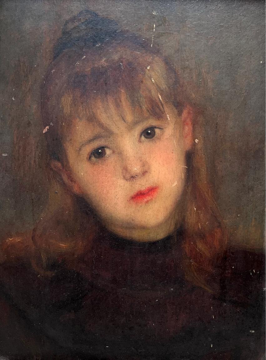 THERESE POMEY-BALLUE Óleo sobre fibra «Retrato de joven» Al dorso titulado, fechado «1895» situado «Angles» 21 x 15,5 cm