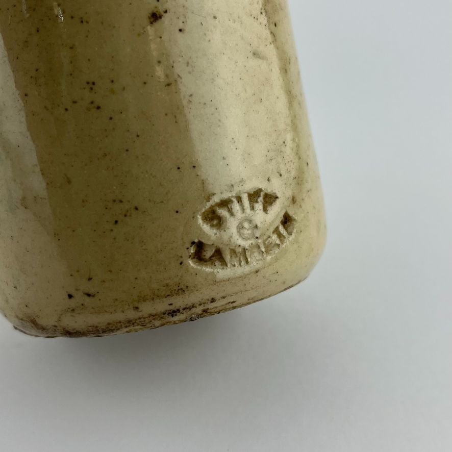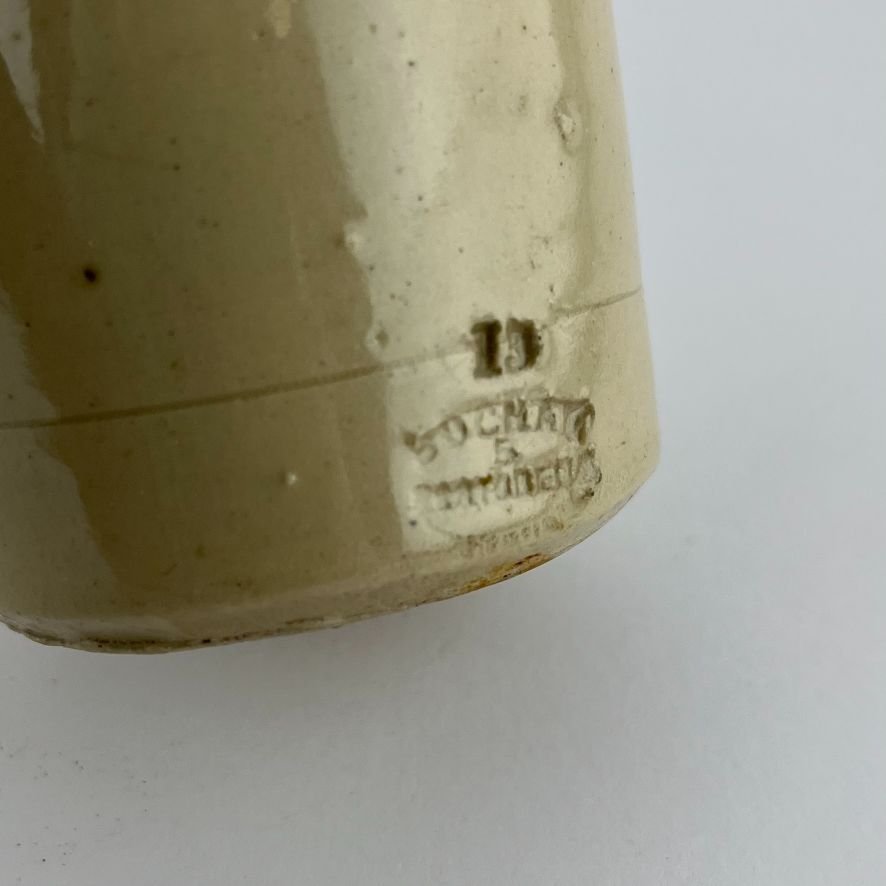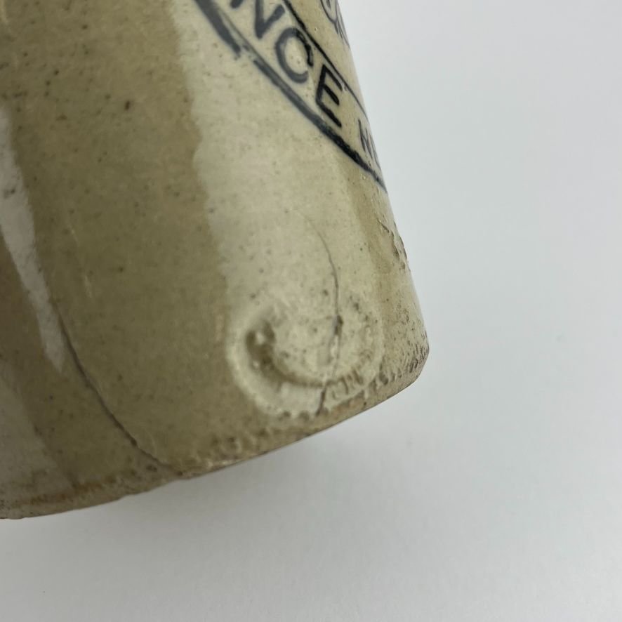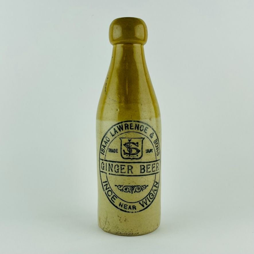 «Isaac Lawrence & Sons. Ginger Beer. Ince Near Wigan.» En dos tonos. Marca estampada en negro. Sello inciso del fabricante fabricante Pearson & Co. Whittington Moor.