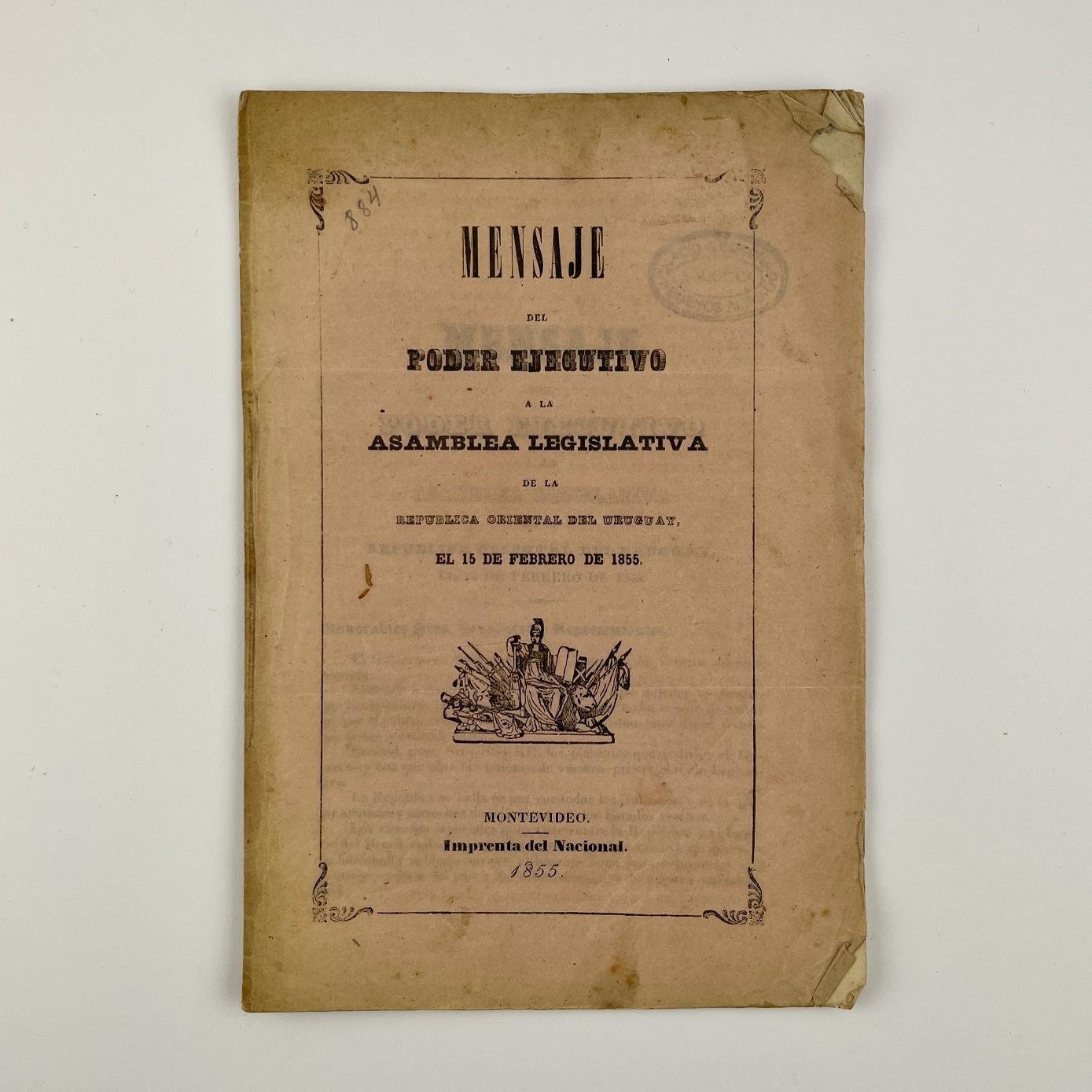 VENANCIO FLORES: Mensaje del Poder Ejecutivo a la Asamblea Legislativa de la República Oriental del Uruguay, el 15 de Febrero de 1855. Montevideo. Imprenta del Nacional. 1855.