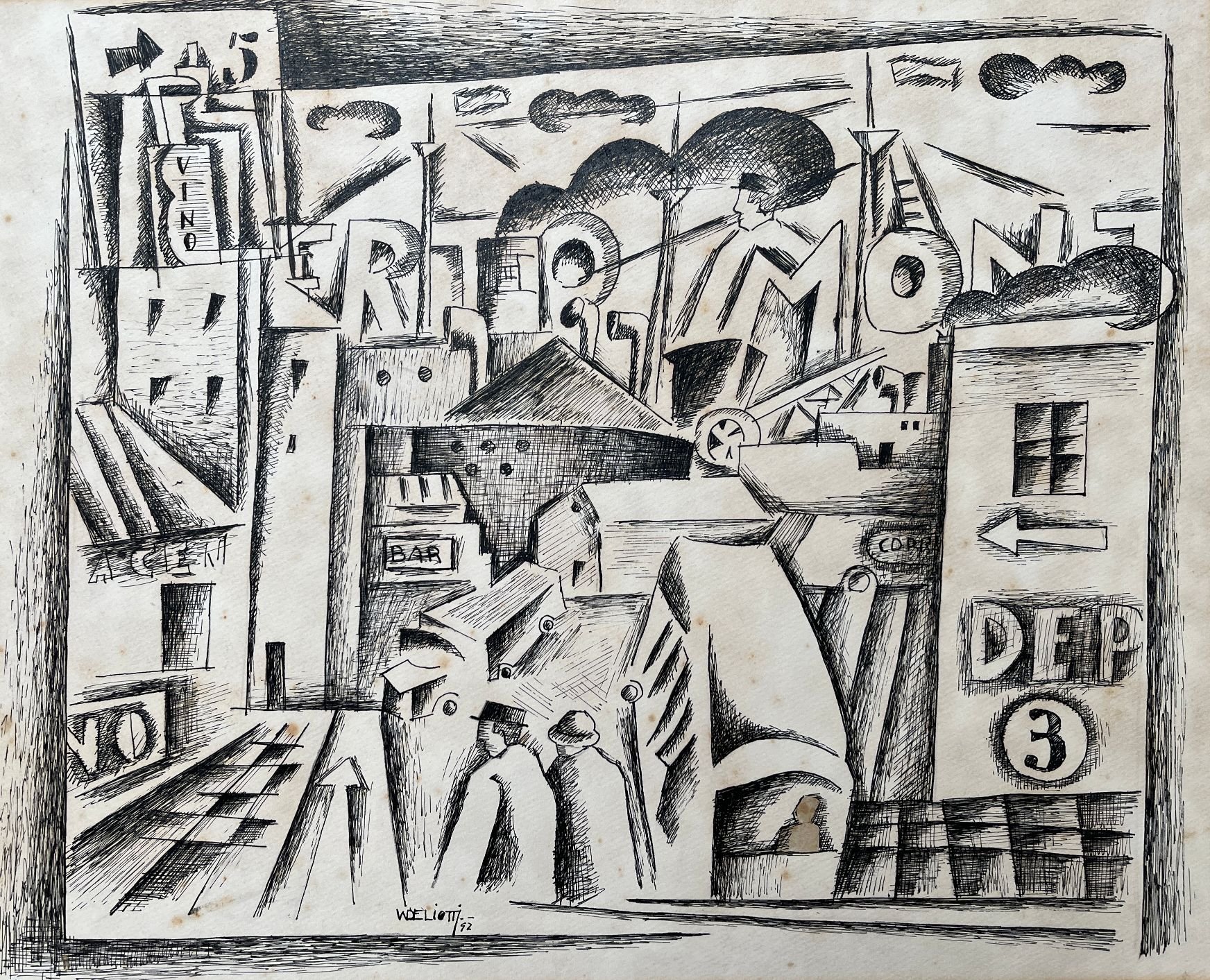 WALTER DELIOTTI (1925-2020) Tinta sobre papel «Constructivo urbano» Firmado y fechado «92» abajo a la izquierda 32 x 39 cm Presenta pequeñas manchas de humedad