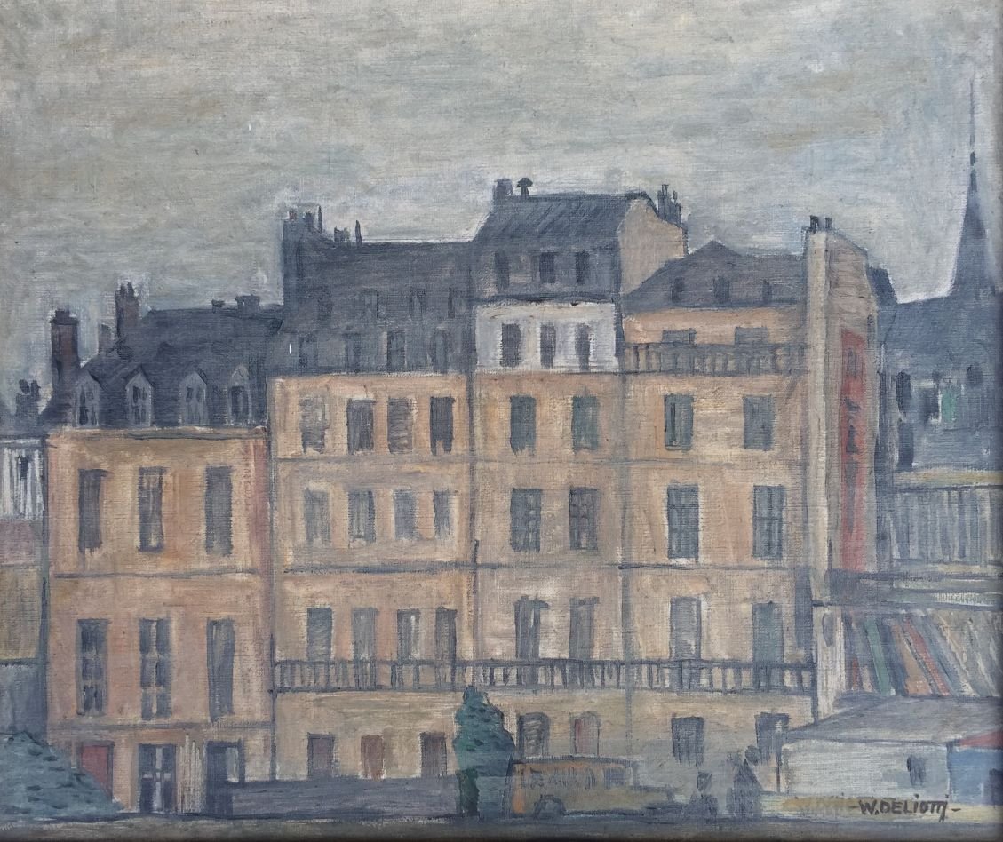 WALTER DELIOTTI (1925-2020) «Casas sobre el Sena» Óleo sobre tela Firmado abajo a la derecha Al dorso titulado, medido y fechado «1970» por el artista 44 x 53 cm