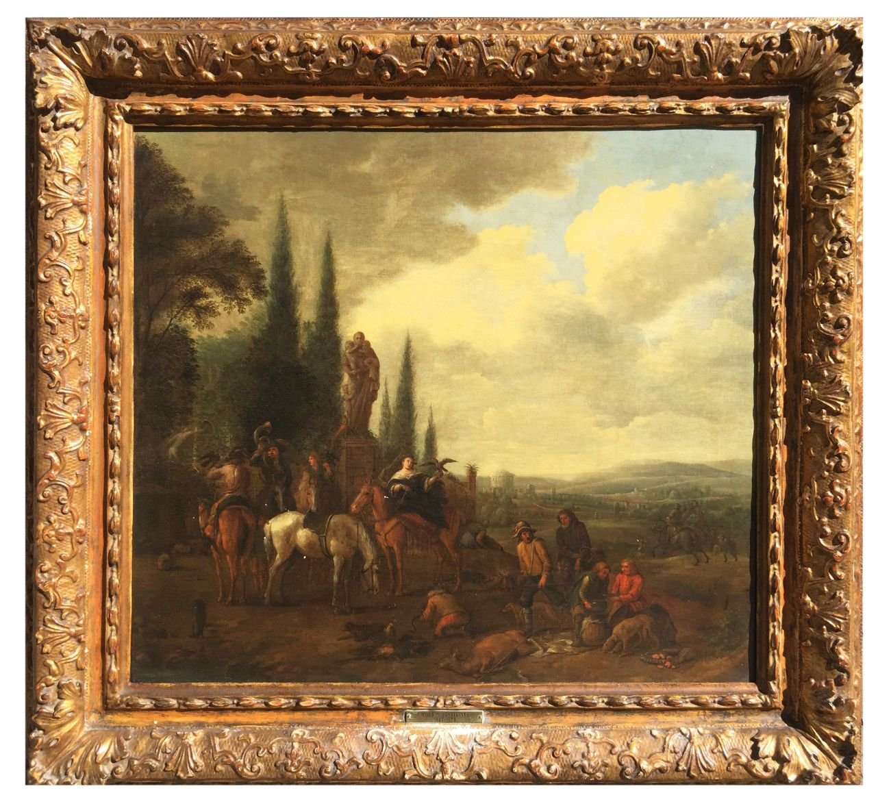 WILLEM SCHELLINKS (Escuela neerlandesa, 1627-1678) Óleo sobre tela «Escena bucólica» 55 x 62 cm