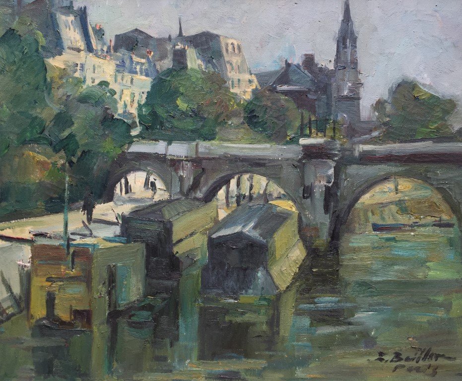 BAITLER, Zoma (escuela uruguaya, 1908-1994). Óleo sobre tela. «Río Sena.» Firmado y situado «París» abajo a la derecha. 48 x 58 cm.
