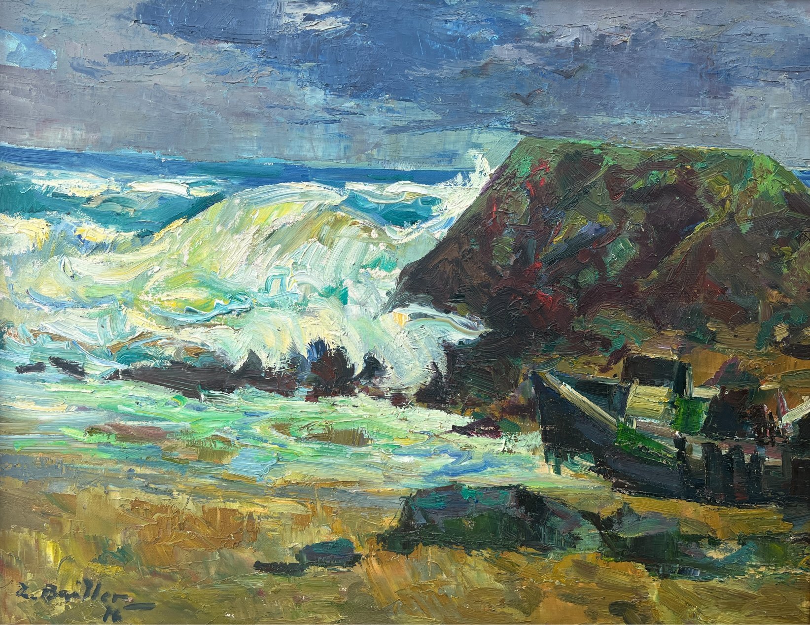 Zoma Baitler, Óleo sobre tela «La roca». Firmado y fechado 76 abajo a la izquierda. Al dorso titulado, firmado y fechado. 56 x 70 cm.